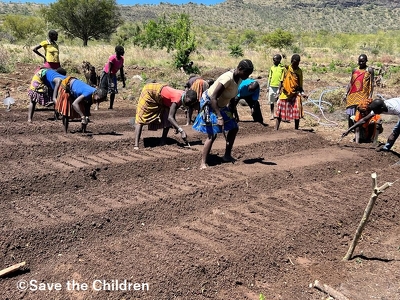 その知見を活かし、2023年3月より、さらに環境が厳しい東部に位置するカラモジャ地域にて本事業を開始しました。カラモジャ地方のモロト県の子どもたちは、4割近くが慢性的な栄養不良の状態にあります。カラモジャ地方には、歴史的に多くの牧畜民が居住しており、主に畜産と雨に頼った天水農業で生計を立てていますが、頻繁に干ばつが発生するため、人々は食料援助に頼らざるを得ない状況です。貧困率も60.2%とウガンダ国内で最も高くなっています。