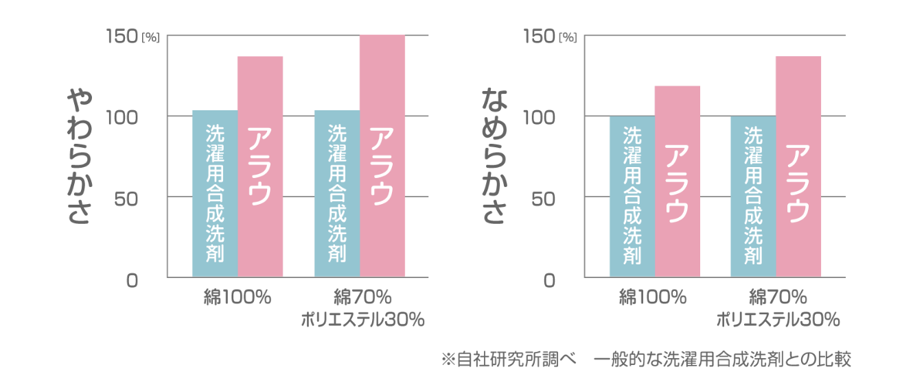 A.「アラウ.洗たく用せっけん」は原料から厳選し、使用シーンに合わせて脂肪酸の配合バランスを工夫することで、高い洗浄力を発揮します。