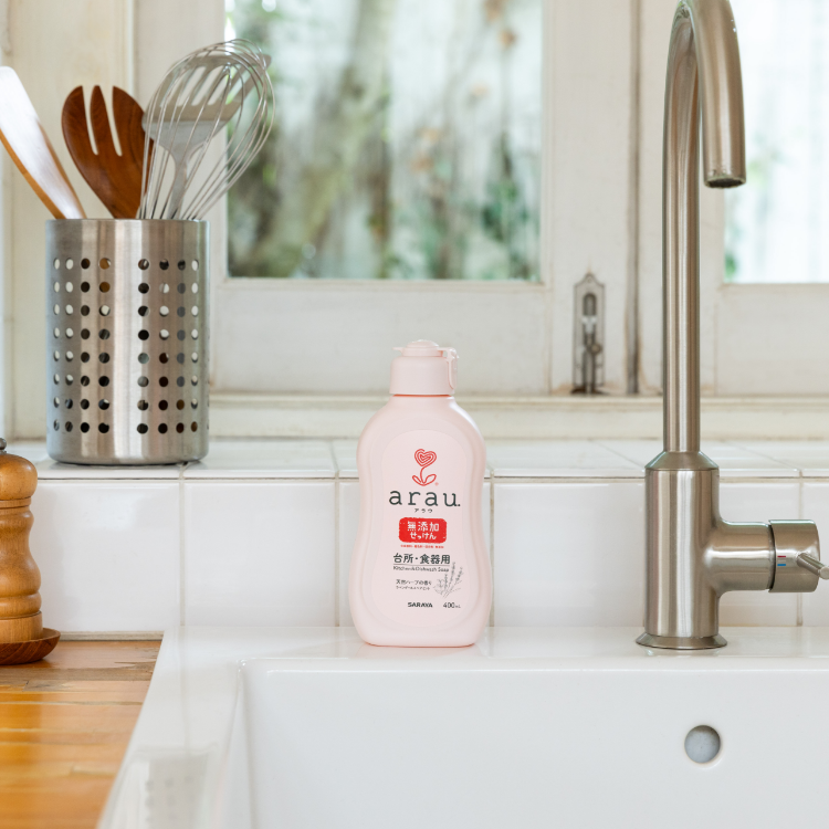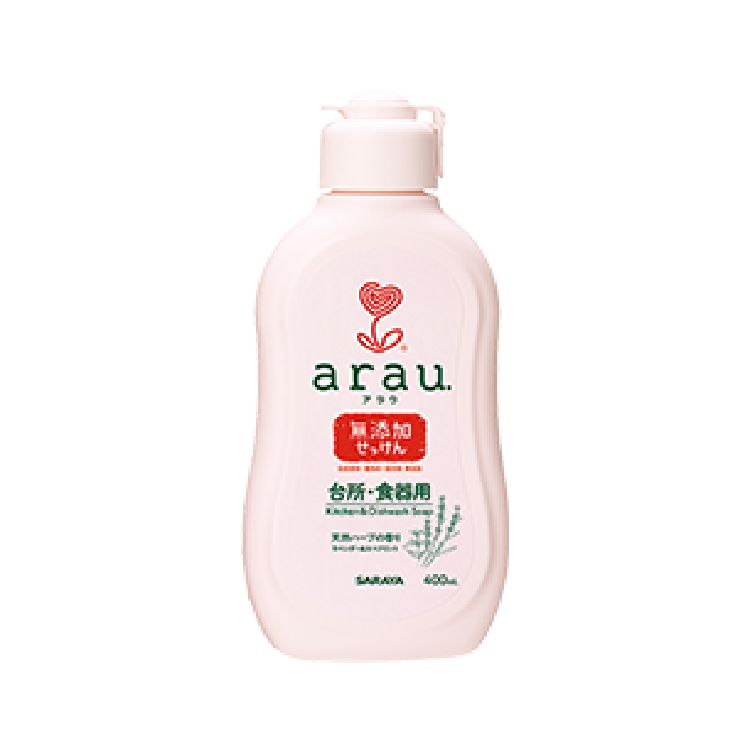 せっけんや合成洗剤は動植物の油脂からつくられます。この原料の臭いをマスキング(他のニオイでカバー)するために合成香料などが添加されます。「アラウ.台所・食器用せっけん」は、原料となるヤシ油や植物油を分解してつくられた脂肪酸をアルカリと中和反応させる製法を採用し、脂肪酸をそのままつかうことで、気になる原料の臭いが抑えられています。