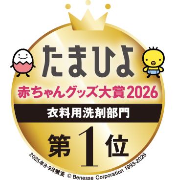 ※4)トモニテ子育て大賞2025ベビー用洗濯洗剤部門 最優秀賞(調査対象:ママやパパをはじめ、子育てに関わる方々1,168回答 期間:2025年7月15日(火)〜2025年8月17日(日)