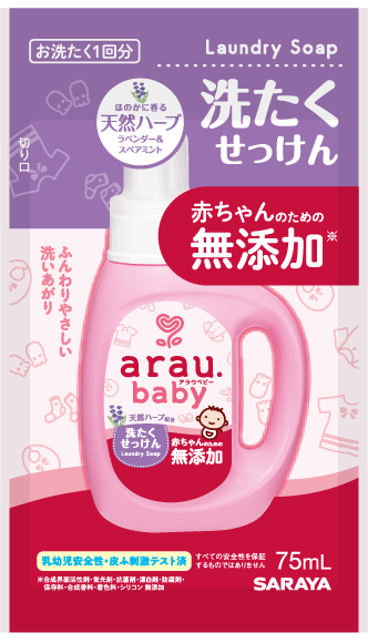 赤ちゃんの肌に直接触れる肌着やタオルを洗うから、余計な成分を残さずふっくら洗い上がる「アラウ.ベビー洗たくせっけん」。