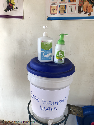 手洗いや飲料水用の設備に石鹸や消毒液を配備して使用を促すとともに、利用者に対して定期的に衛生意識向上のためのセッションを継続的に行っています。