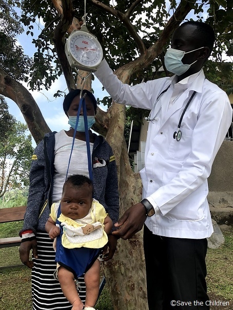 保健医療施設で栄養状態の測定を受ける幼児 (ニャキユンブ準郡。2021年4月)