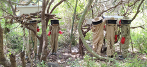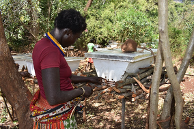 代替の生計手段の導入:気候など、外的要因の影響で、農業から十分な食料や収入が得られない場合に備え、農業以外に生計手段をもつことがとても重要です。そのため、本事業では、サラヤ様からのご寄付により、事業地の環境に適した養蜂とキノコ栽培を取り入れました。養蜂に関しては、地域で手に入りやすい丸太等を用いた伝統的な巣箱も用いつつ、より生産性の高い改良式の巣箱を導入しました。