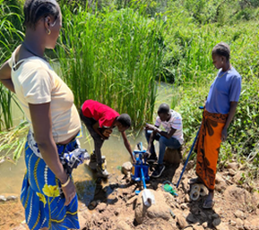 また、農業に欠かすことのできない水へのアクセスを確保するために、足踏み式ポンプを購入し、供与しました。自転車のペダルのような足踏みが付いた手動式のポンプで、足で踏むと水をくみ上げ送ることができます。燃料を使わずに動くため、コストもかからず環境にも優しいと言えます。