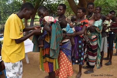 また、昨年に引き続き、村落保健チームがコミュニティにて、上腕周囲径を使った栄養スクリーニング活動を定期的に実施しています。3,379人をスクリーニングし、新たに35人が重度急性栄養不良、73人が中等度急性栄養不良と診断されました。それぞれの子どもの栄養状態に合わせ、病院や保健施設へ紹介しました。また、栄養不良と判断された子どもやそのリスクがある子どもをもつ世帯を継続的に訪問、経過を観察し、改善に向けたフォローアップを行っています。さらに、保健施設職員と村落保健チームの能力強化、より良い質の母子保健・栄養サービスを届けるために、活動を監督・指導するモニタリング活動も行いました。