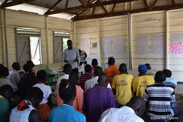 子どもが安全で健やかに生活できる環境を整えるため、地方行政官や保健施設職員と連携して啓発活動を実施し、計1,125人の地域住民が参加しました。離乳食の与え方、食事の回数、栄養バランスといった内容に加え、育児における男性の関与の重要性や家庭・コミュニティにおける保護者の役割・責任、そして、虐待やネグレクト、児童労働について、また、虐待の通報方法など、子どもの保護に関する内容についても伝えました。